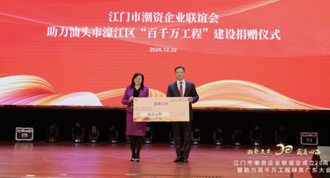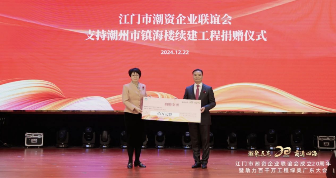 Lors de la cérémonie de don, l'Association des entreprises financée par Jiangmen Chaozhou a démontré sa responsabilité sociale et son esprit caritatif à travers des actions concrètes. Elle a fait don de 200 000 yuans à l'initiative « Cent mille et dix mille projets » pour un Guangdong vert et beau, contribuant à l'amélioration de l'environnement écologique et de la qualité de vie des habitants de la province du Guangdong. En outre, elle a fait don de 100 000 yuans au projet de continuation de la tour Zhenhai à Chaozhou et de 100 000 yuans supplémentaires aux cent mille et dix mille projets du district de Haojiang.