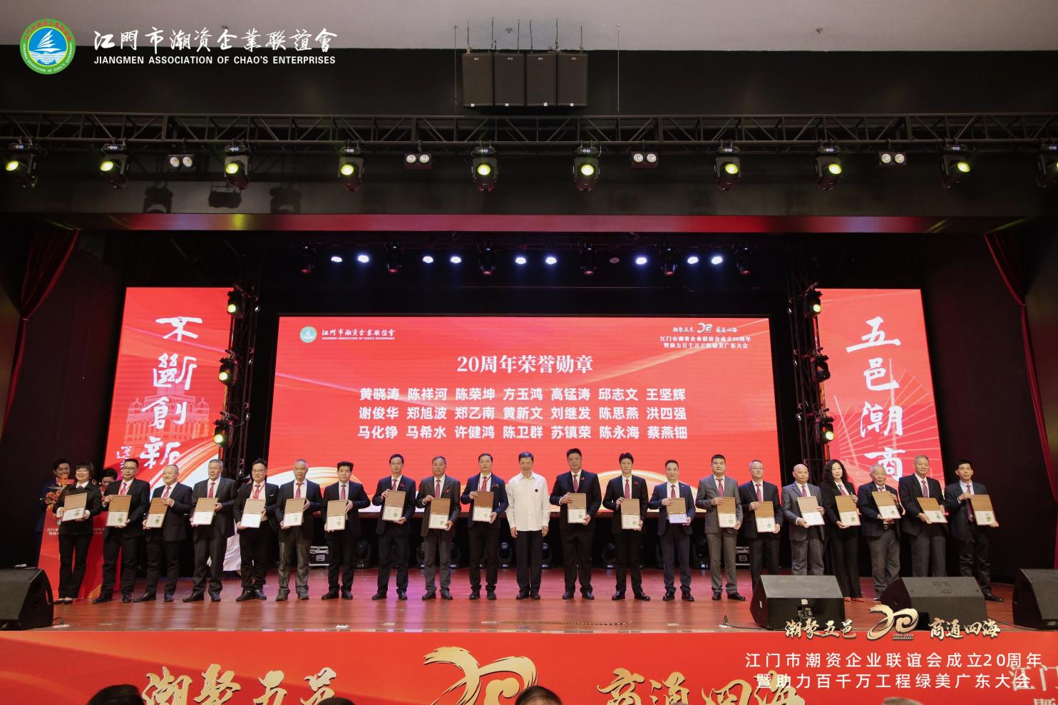 Depuis sa création en 2004, l'Association des entreprises financée par Jiangmen Chaozhou a été accompagnée par un groupe de compatriotes de Chaozhou qui ont toujours soutenu son glorieux parcours de développement de 20 ans. Au cours de ces deux décennies, ils ont apporté des contributions altruistes et positives à la construction et au développement de l’association. En reconnaissance de leur affirmation, de leur soutien et de leurs contributions significatives à l'association.