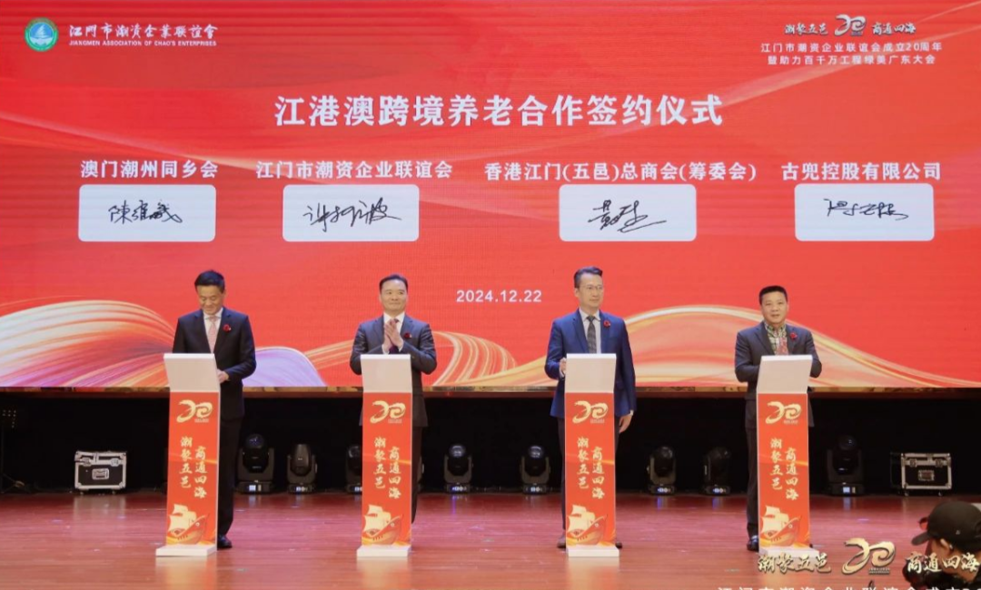 Par la suite, une cérémonie de lancement de la coopération transfrontalière en matière de soins aux personnes âgées entre Jiangmen, Hong Kong et Macao a eu lieu, marquant une nouvelle étape pour la Chambre de commerce dans la promotion de la coopération régionale. Jiangmen, Hong Kong et Macao partagent des liens personnels étroits et une proximité géographique, possédant des avantages régionaux inhérents. Dans ce contexte, en saisissant activement les opportunités de développement présentées par la région de la Grande Baie Guangdong-Hong Kong-Macao, en intégrant des ressources culturelles uniques, des produits touristiques complets, des projets industriels ruraux et d'autres ressources des trois régions, une approche croisée à plusieurs niveaux Une plateforme frontalière de développement des soins résidentiels pour personnes âgées sera créée.